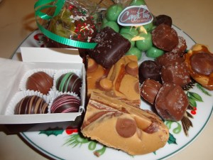 And those green balls on the candy plate? They’re chocolate-mint malted milk balls and they taste heavenly melted in hot chocolate. And I have some left  😉