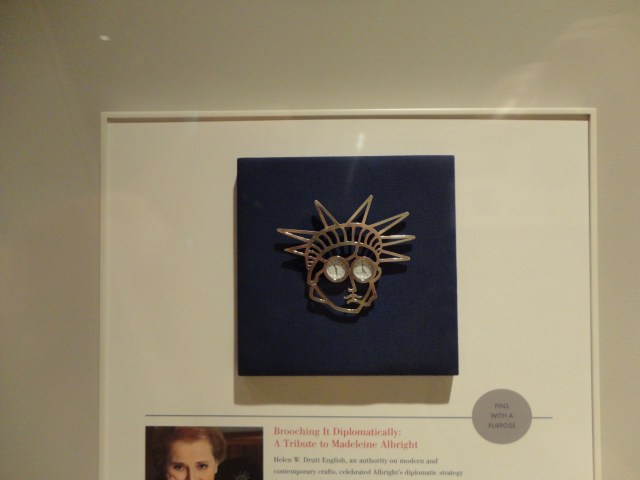 The collection will be at The Mint Museum of Craft & Design until September 23. Ms. Albright was in Charlotte last month speaking and signing books . . . and of course buying pins in The Mint gift shop 🙂