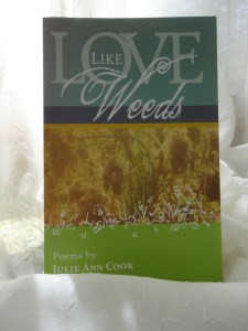I love Julie’s description of herself on the back of her collection, Love Like Weeds – “Between assisting in living room railroad construction and addressing concerns of who would win in a fight between Megatron and Iron Man, Julie is an author, artist and webmaster.”