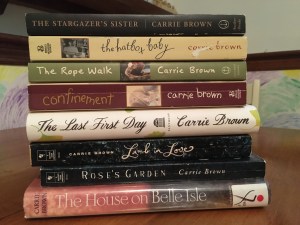 Carrie Brown writes literary fiction and I’ve been a fan of hers since studying with her at Wildacres Writers Workshop several years ago. I hadn’t heard of Carrie before signing up for the workshop, so I read her first novel, Rose’s Garden, weeks before attending. I fell in love with her work and couldn’t wait to spend a week with her. I’ve bought every one of her books since.