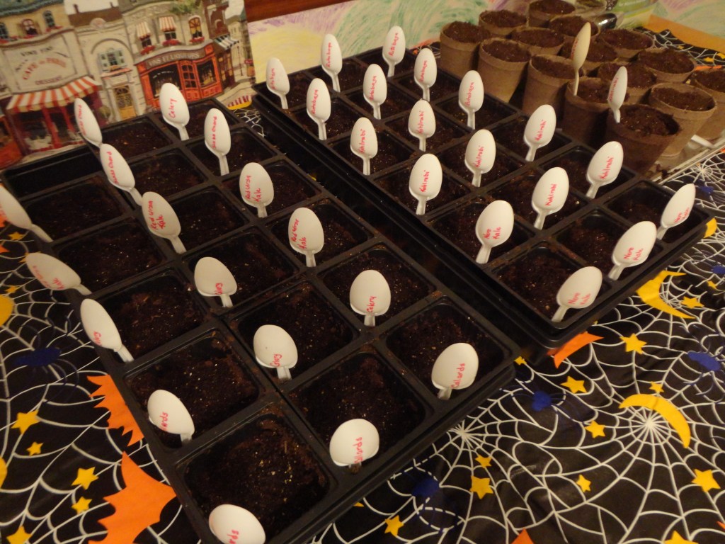 As is often the case with writers’ minds, one thought bleeds into another and you never know where you’ll end up. As I scooped out the peat mix and dropped the tiny seeds, I thought about the bigger picture of gardens. Here it is the middle of January and I’m already planting a spring garden, already anticipating saving seeds from this harvest to plant for next year. While I understand the science behind all those seeds inside a melon or pepper, I’m still in awe of how many there are, all that potential for more plants. There’s a built-in sense of hope with growing veggies and flowers.