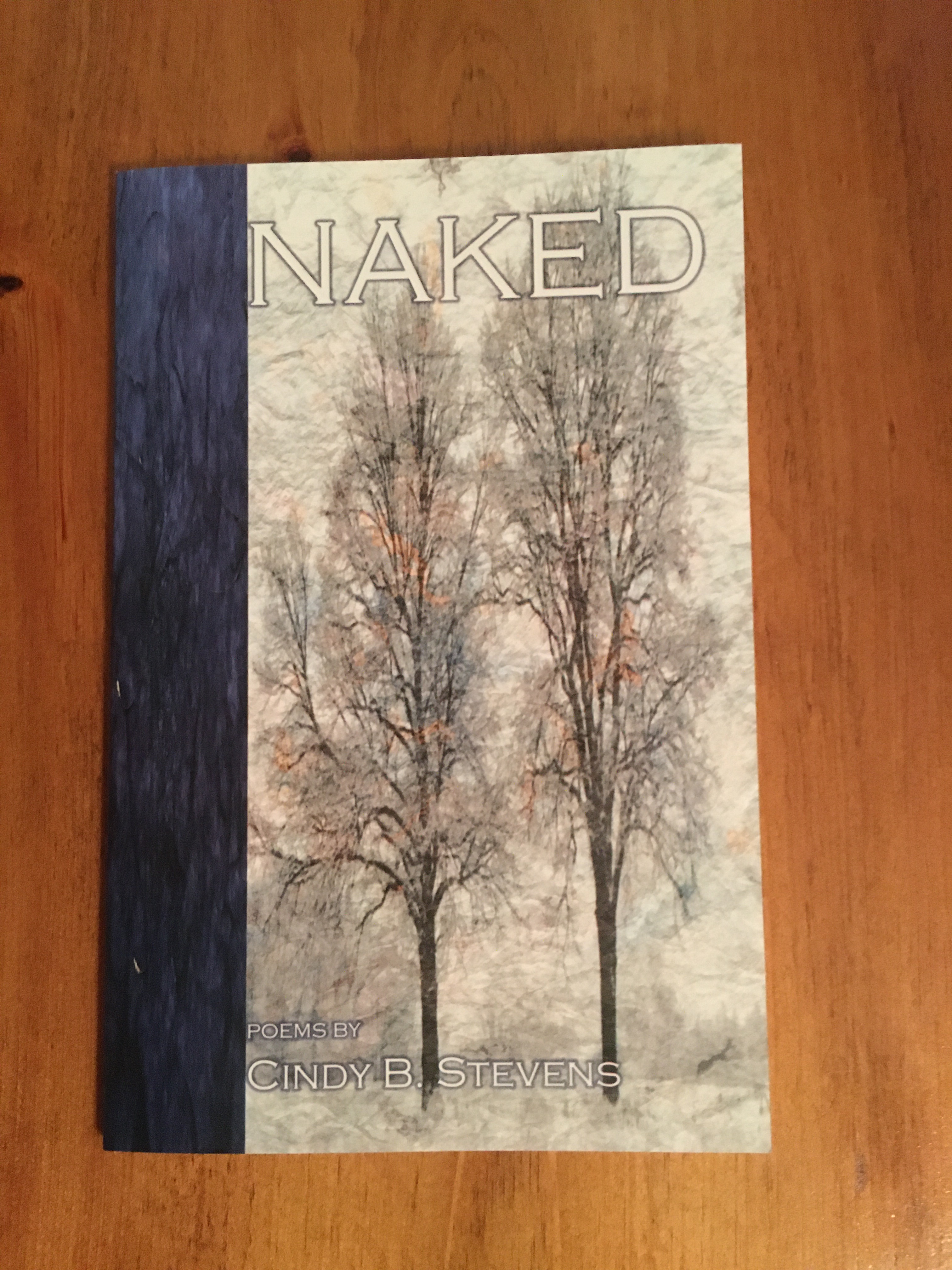 In Cindy’s first collection, Naked, the title of the book appears in many forms in the poems – the act of being physically or emotionally exposed. There is such rawness and vulnerability in the narrators’s voices the reader may be uncomfortable, yet at the same time wanting to comfort. It’s a narrow space between the two but Cindy guides us through. With Cindy’s permission I’m sharing two poems from her collection. (The titles are bolded).