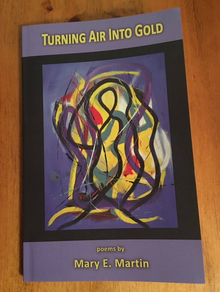 Mary is also a dancer and that sense of movement carries through her poems in her just-released collection, Turning Air into Gold. There is the movement of the body as she pays homage to the inner thigh in Dance Class, or the power of the ballerina’s en pointe in Balance. There is the rush and swirl of water, the unknowing to knowing in the loss of innocence; the movement of time and space in death and relocating from one part of the country to another. Mary reminds us that nothing is stagnant, that even in the stillness, we and the world are in motion.