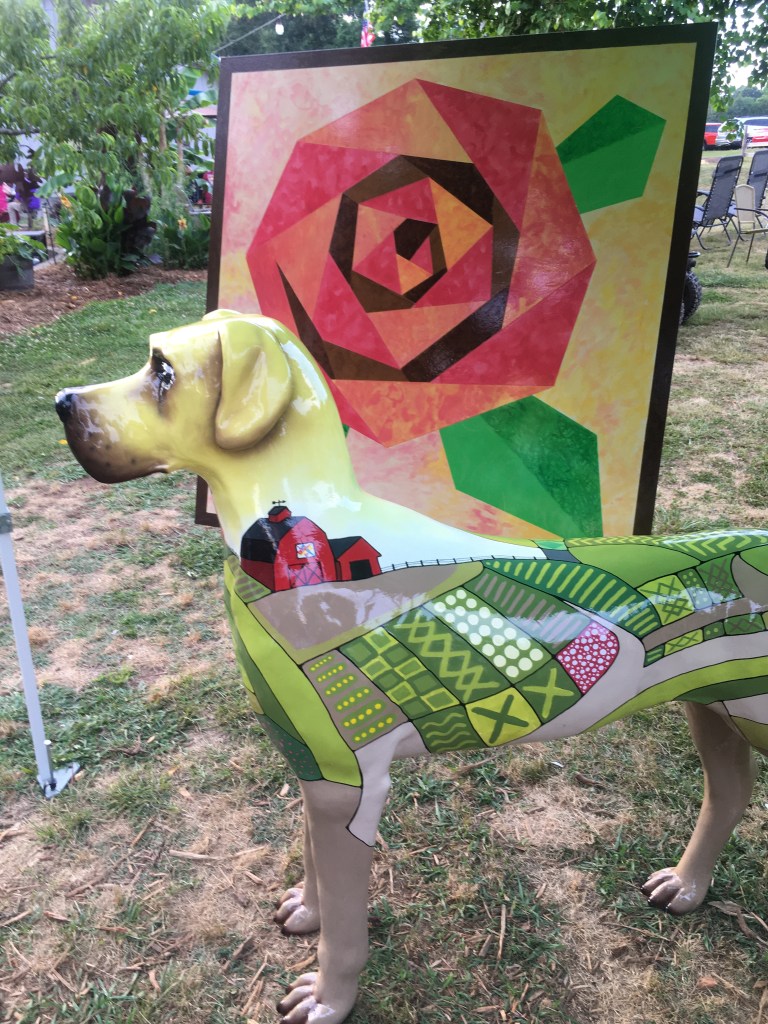 The kick-off for the Ag+Art Tour was an evening of music, food trucks, and craft beer at Benford Brewery, our local brewer who has received national acclaim. The only artists there Friday night were the musicians, the brewers and the cooks in the food trucks – and if you’ve watched any food shows you know the brewer and cooks are definitely artists – but visual art was on display with Aggie, the new mascot for the Ag+Art Tour, and one of the quilt blocks for the local quilt trail. The design on Aggie is the logo for the Ag+Art Tour.
