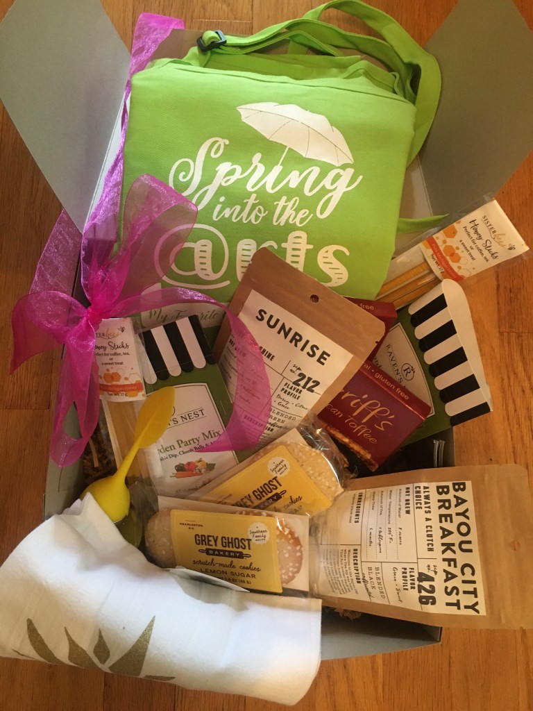 The next day we missed the pottery, handmade stationery and paper goods, sewn items, and woodworking, because we were off to other venues. But before we left Friday night I won a gift box full of teas and treats, an apron and towel from the Lancaster County Council of the Arts.