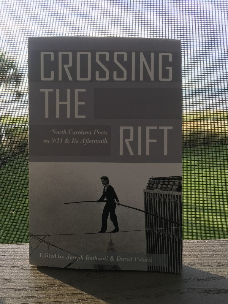 But the story hasn’t ended, and it’s not meant to. In January I was invited to submit a poem for Crossing the Rift: North Carolina Poets on 9/11 & its Aftermath, an anthology commemorating the 20th Anniversary of 9/11, and dedicated to those who died that day and those who continue to die as an outcome of September 11. The book was edited by Joseph Bathanti, whose niece Katy made it out of the North Tower, and by David Potorti, whose older brother Jim, did not.