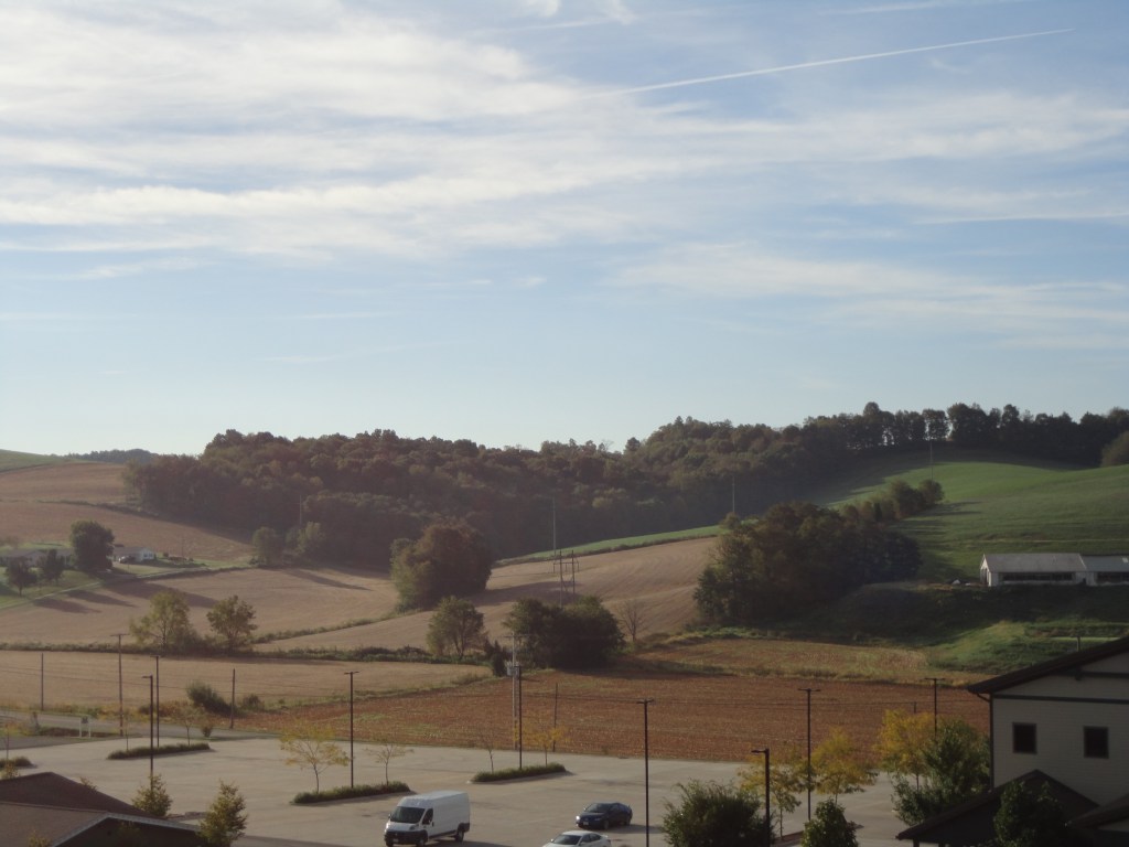 The first thing is the scenery, especially in the fall. Even if there was little interest in the Amish themselves, the rolling hills and the trees changing colors would be enough. The Amish and Mennonites are known for their beautiful quilts, and seeing the pastures and fields as quilt squares is typical. Something I noticed this trip that I’d not paid attention to before is how the plowing looks like stitching. The serenity of these hills and fields, and the uncluttered skies soothes the soul. During one of my last visits home when Dad was still alive, we spent a day in Amish Country. It was about this time of year, maybe a week or so later, because the trees were ablaze with color.