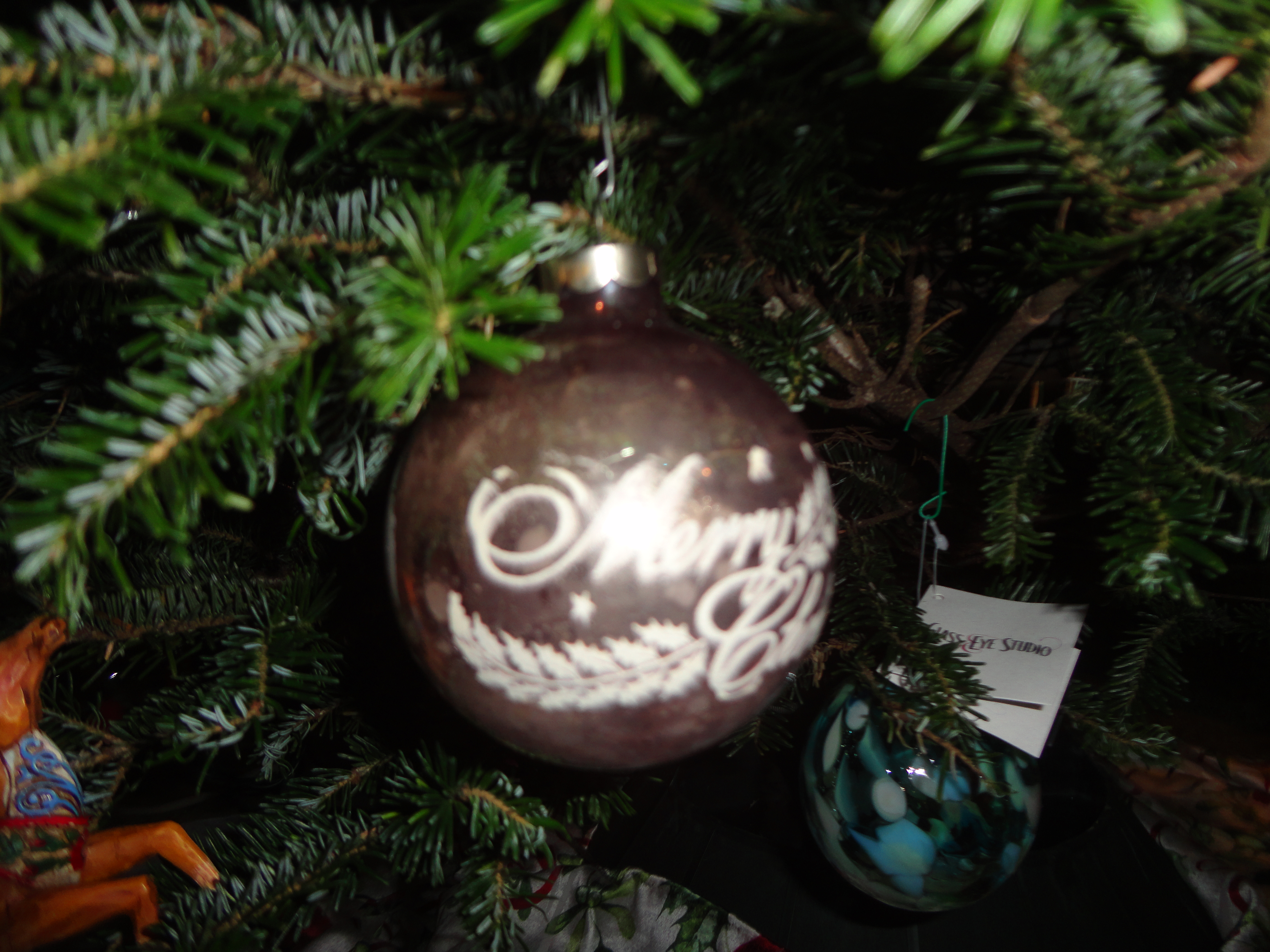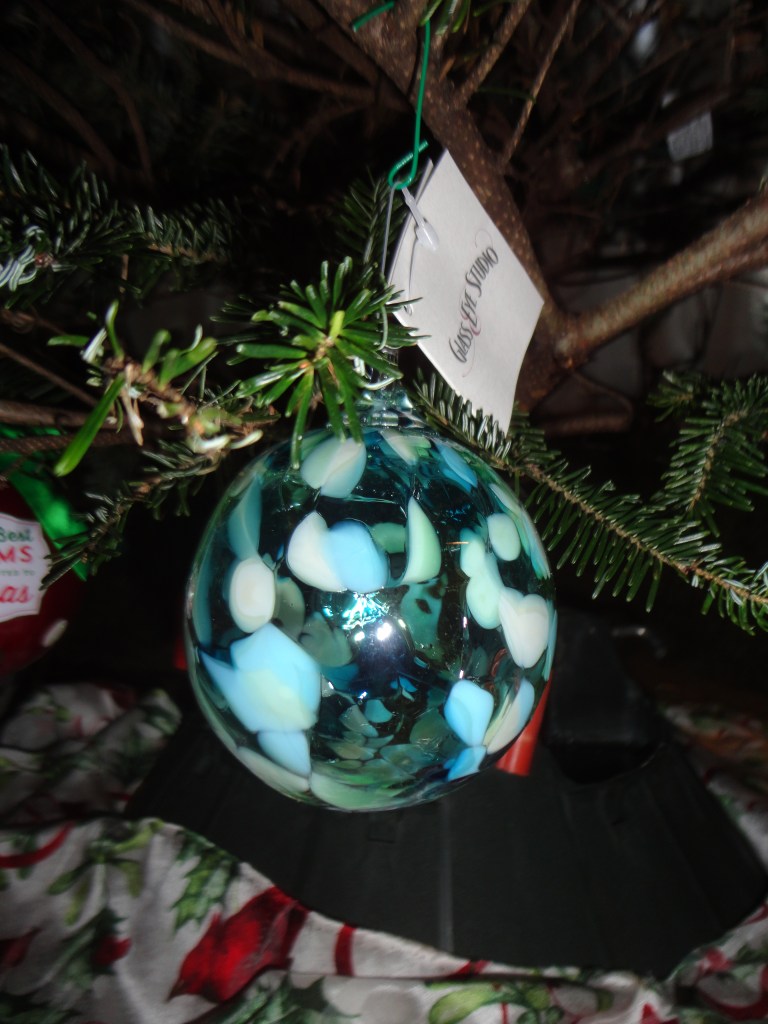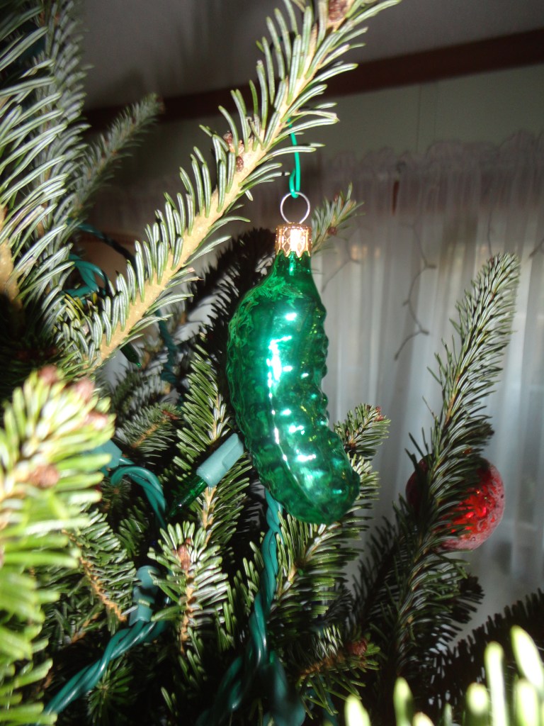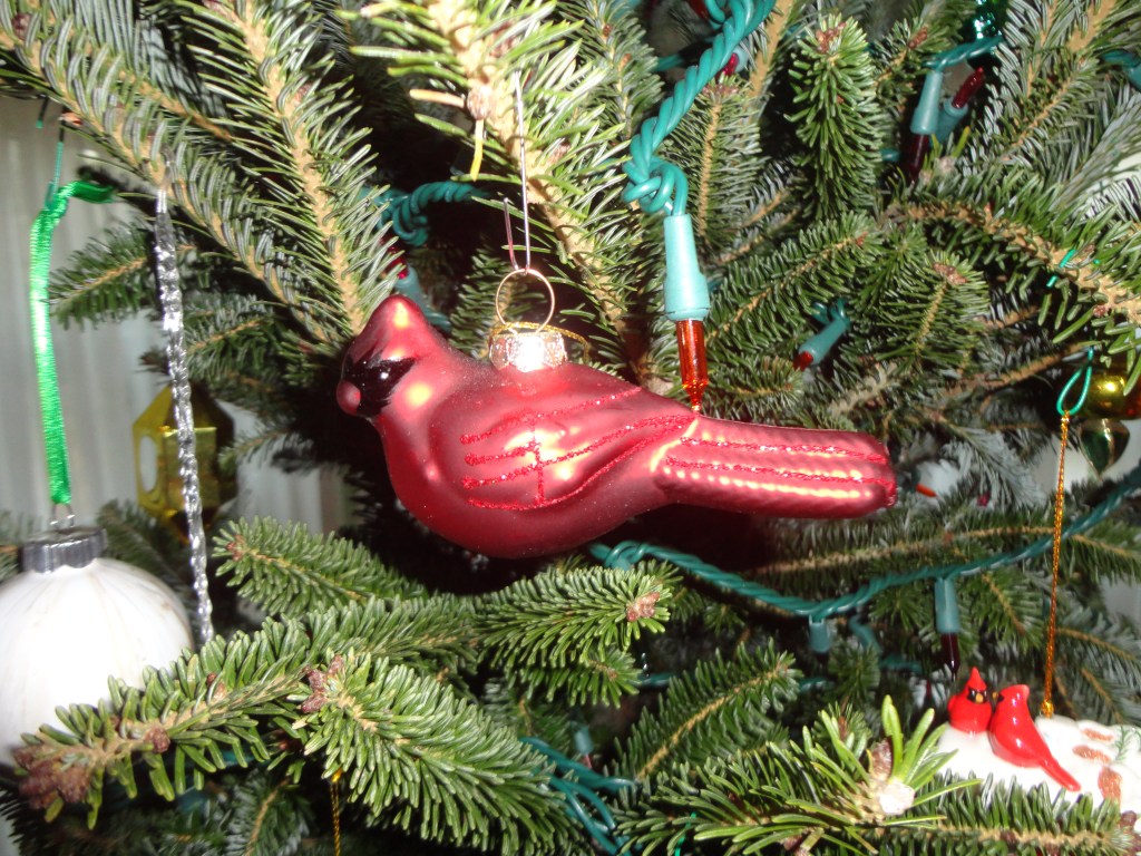 Some have special memories: the purple and silver one is the last one my grandma gave me; the cardinal represents mom and dad. The pickle is part of our tradition of hiding the ornament, the finder receiving a special gift. The Nutcracker came after I took my daughter to see a local production of the ballet. She was four and danced between the rows of seats and into the aisle. The ball with the blue flag was produced the Christmas after 9/11. As we commemorated the 20th anniversary this year, it seemed appropriate to hang it.