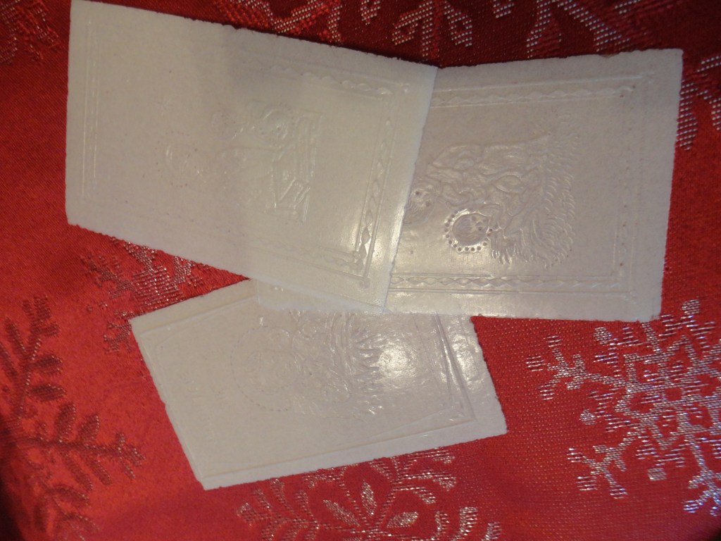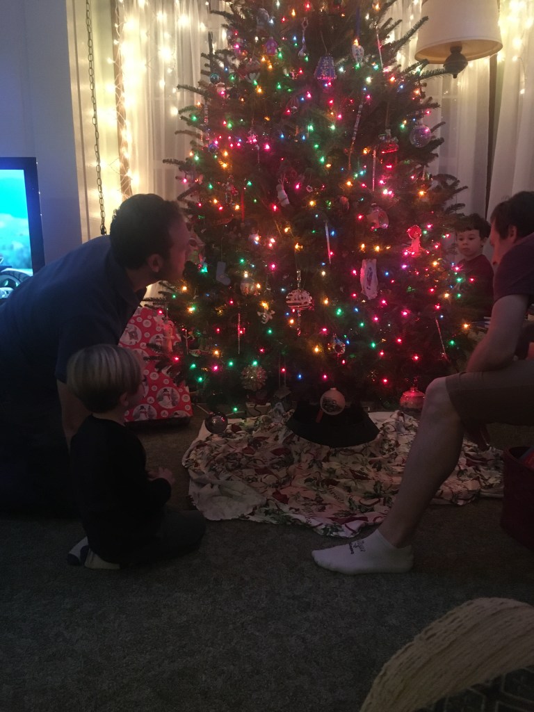 Saturday evening was our family wigilia – the Polish Christmas Eve feast. The Three Little Guys are old enough to understand a bit more about the blessing and sharing of the oplatki before the meal. Oplatki is a wafer, embossed with a Christmas image–each person receives a portion. As a blessing before the meal, we offer our piece to everyone else, along with a blessing and holiday wish. We break off a piece of each others’ wafer as they extend the same to us. The Little Guys enjoyed the story of how we bless, break, and share, and one mentioned how much he liked the taste. They still didn’t want to taste the sauerkraut soup, but that first course isn’t the most important part of the traditional meal anyway.