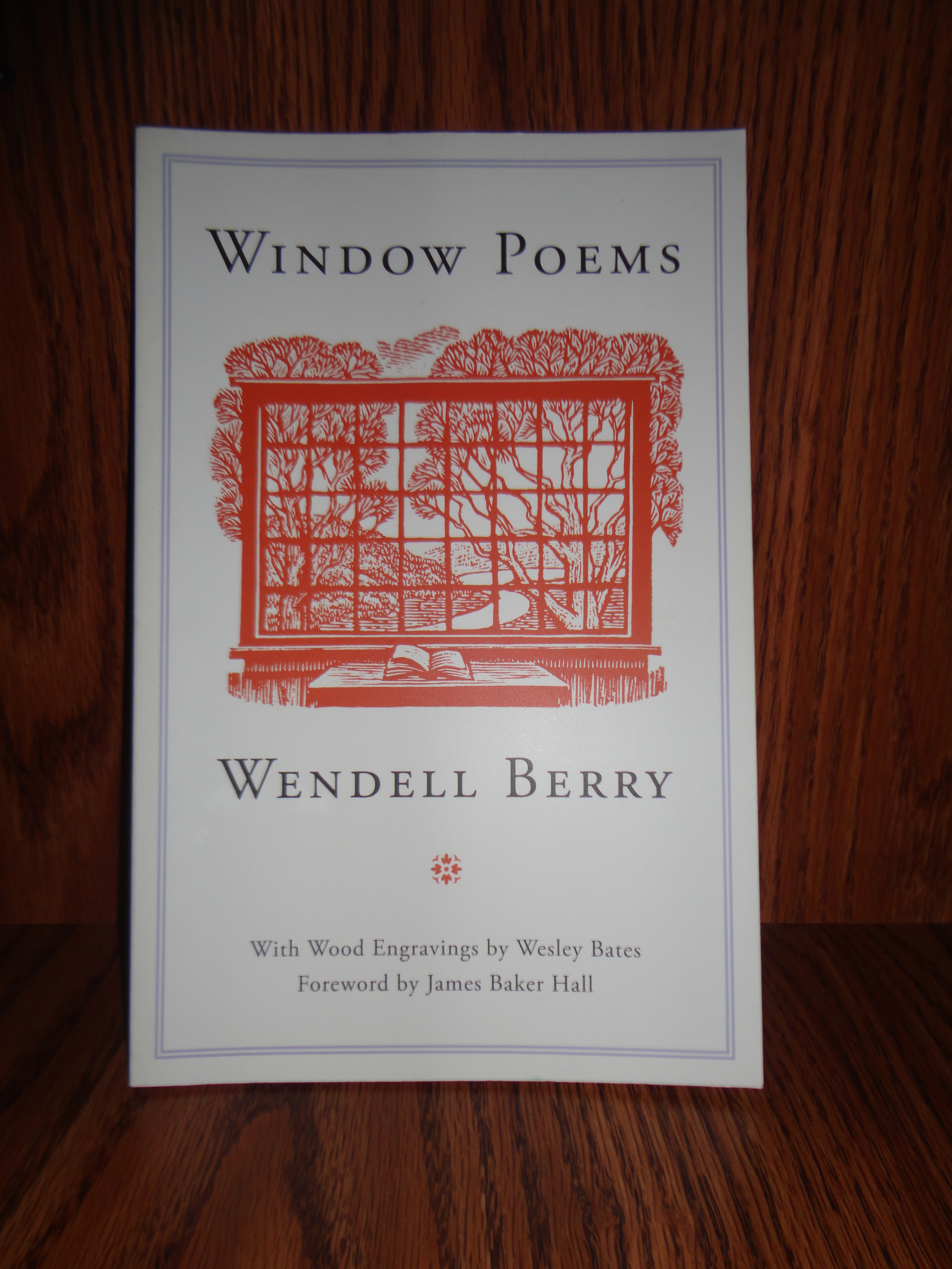As I’ve mentioned several times before I love Wendell Berry’s writing, especially his poetry. The name for my blog came from one of his books of poems, and the idea that he looked out his window every day for decades and wrote about his observations. I strive for that dedication and sense of contemplation. Until I get there, this is from my original post: