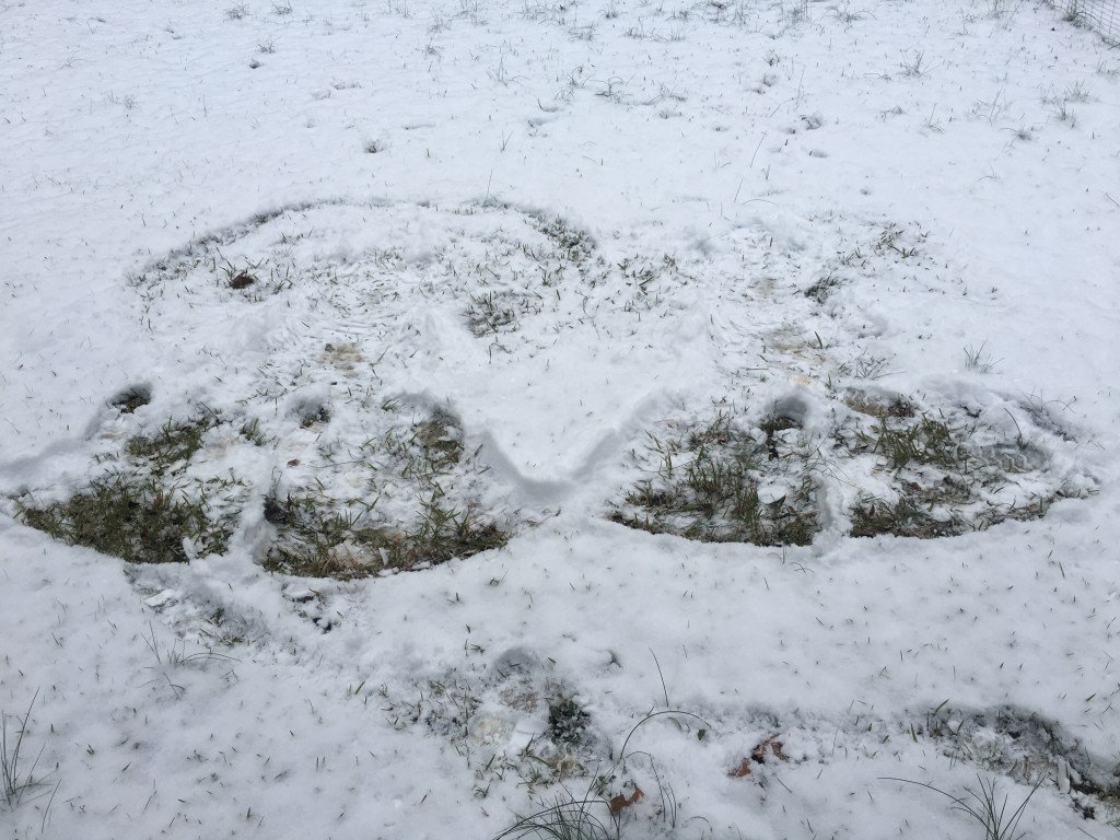 Two weeks ago our part of the Carolinas had snow – trust me, I know it was absolutely nothing compared to what so many others had, so it’s hardly worth calling it snow. But it was enough to go out and make some shadowy snow angels. It too was in honor of Mom. One of my sisters’ and my favorite memories is watching her flop onto the snow late at night as we left our neighbor’s house. Maybe it was New Year’s Eve and we’d been visiting with Max and Ethel that night. I don’t remember, but it was late and Ethel had never seen a snow angel. So by the light of the moon and stars Mom formed her wings, and the laughter from all of us sounded like angels singing. My sister Trudy usually does this, one for Mom and one for Dad, but I’m glad I had the chance to do it this year.