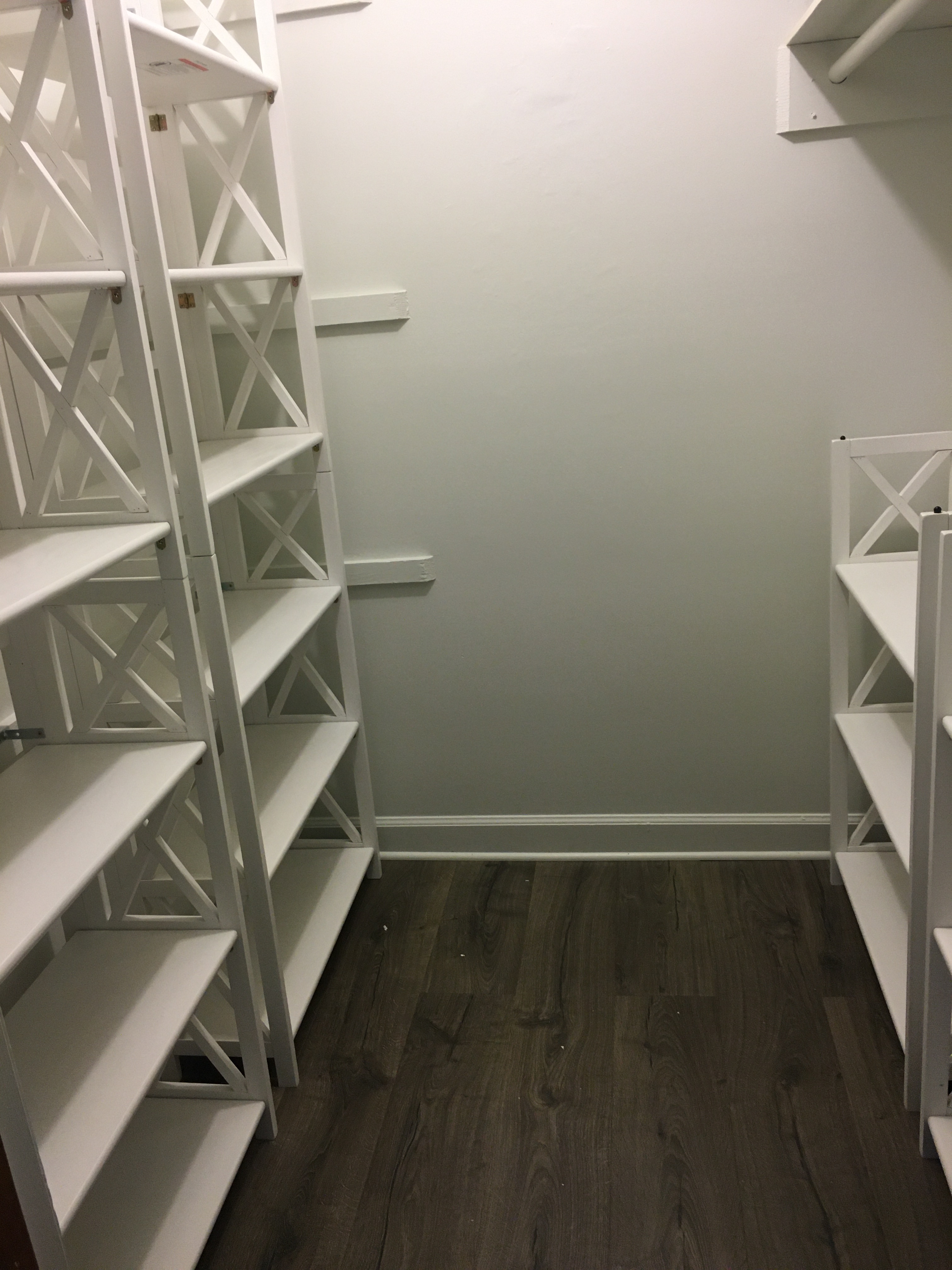 I went with bookcases instead of build-ins because I know I won’t be in this house forever, and since my office is a bedroom, the next owners may want to use the closet as an actual closet – imagine! I know what it’s like to tear out book shelves. The previous owners of a house I once lived in converted a doorway into a mini library. The width of the door jamb was just the right size for their collection of paperbacks, so there were several shelves. Unfortunately for us, the door was one to the front porch (there was another door so we still had access to the porch), and by boarding it up, it cut off natural light into the room. Dismantling it was not easy – fun seeing it all go – but not fun doing it. So for my mini library, it was bookcases.