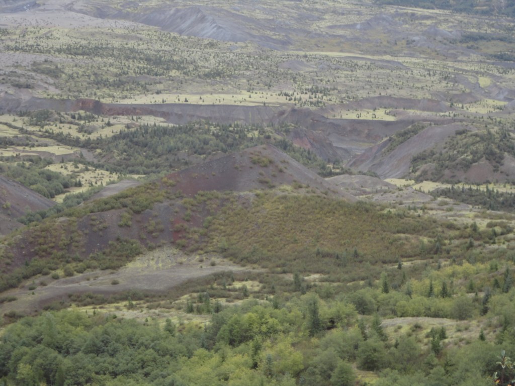 There is a blast zone and a scorch zone. In the blast zone everything was obliterated, or charred – like the rocks. In the scorch zone trees were killed by the heat but the force wasn’t strong enough to knock them over. Hurricane force winds twisted other trees.