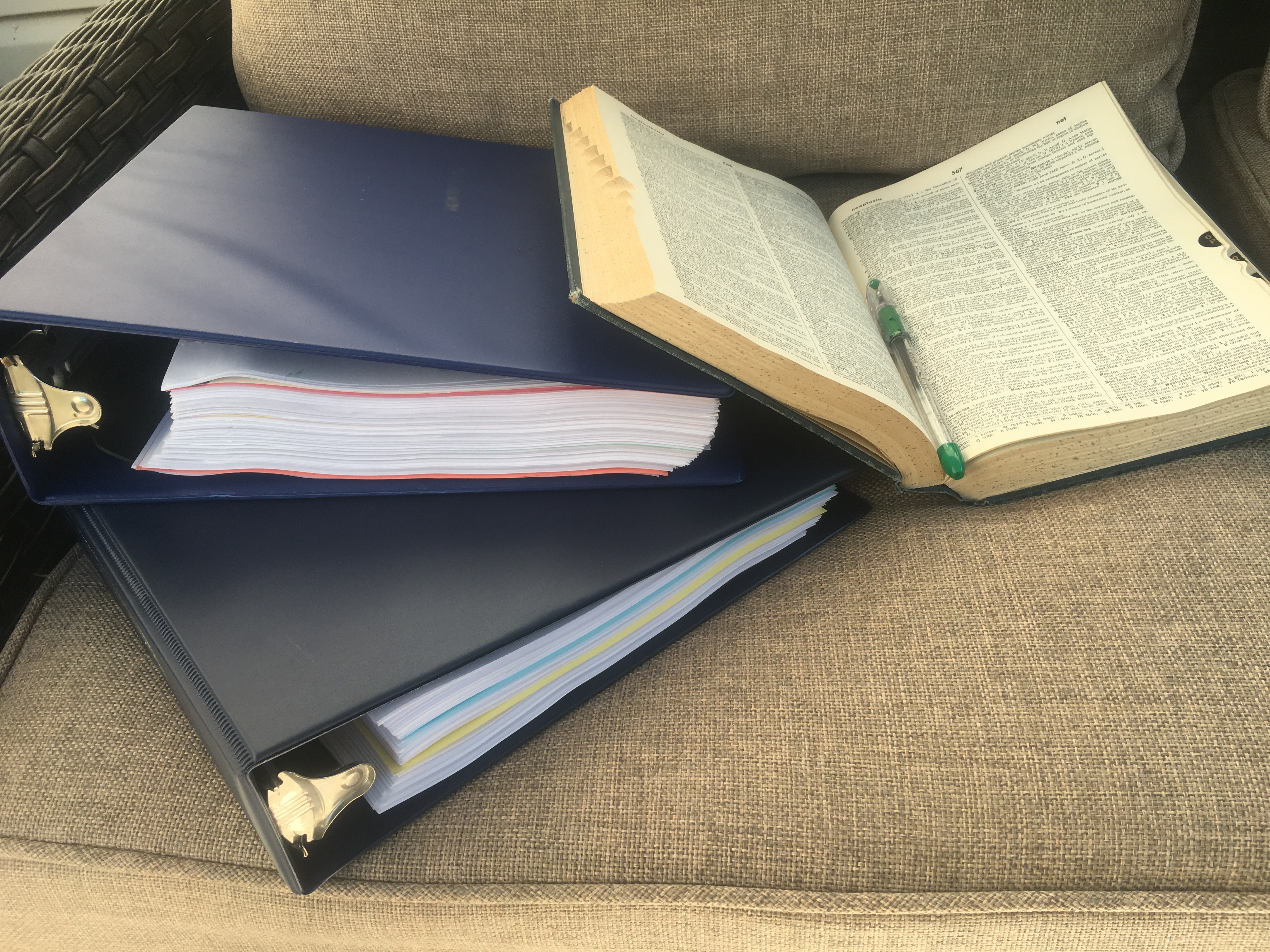 So, what is? It’s that time of year when I’m up to my armpits in poetry and art submissions for Kakalak – and as always, I’m loving it. This year we have 637 poems to read and 170 pieces of art to look through. I’m not sure yet how many of each will be in this issue, but unfortunately it won’t be all of them. A friend asked over the weekend, ‘How do you even get through that many?’ My goal is to read 50 poems each day and that takes 5-6 hours. It’s daunting, but not as daunting as it sounds. Unlike my fellow editors, I print off all the poems – they do their work on the computer. I’d have such a headache and eye strain if I did that! I have the poems in my binders, go sit out on my deck and read. Being outside makes the task easier and much more pleasant. This is a picture from last year, but it’d be the same if I took one this year. If all goes as planned, I should finish my scoring within the week. Then I wait for the others to finish and then the magic begins!