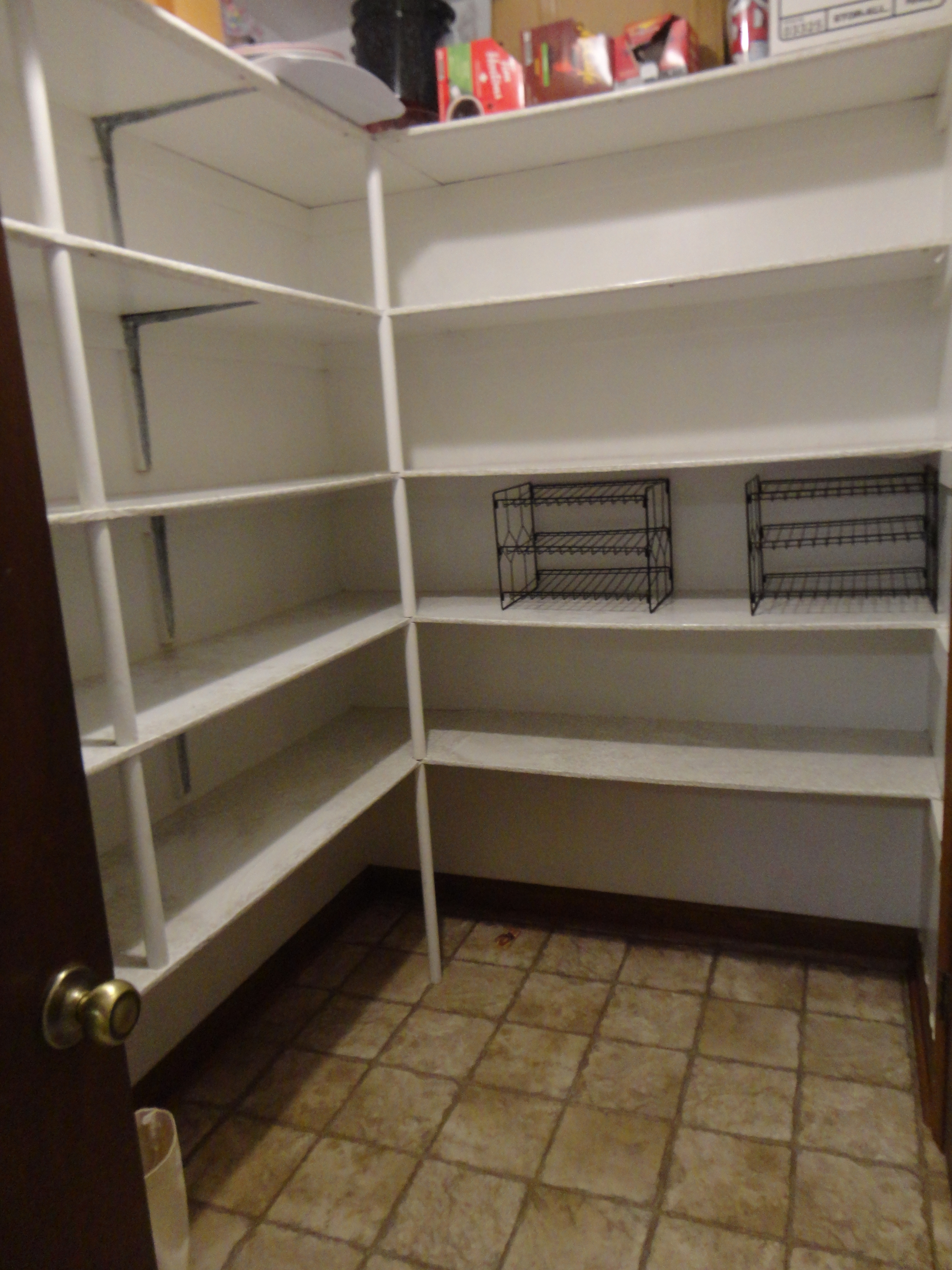As you might guess, this is my wonderful walk-in pantry. It measures 6’ x 9’ and usually holds various foodstuffs, appliances, and serving dishes. My friend Rosemary likes to tell me this is actually her apartment and I’m simply her landlord keeping an eye on things. This room was one of the things I loved about the house when we moved in twenty-six years ago. Then it was violated.