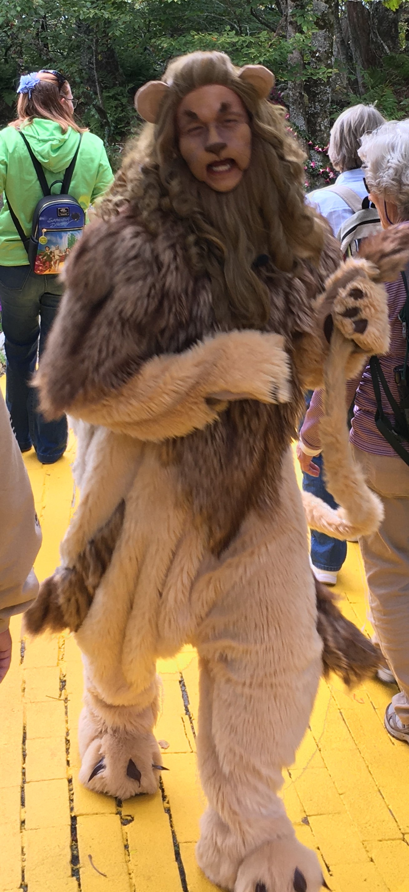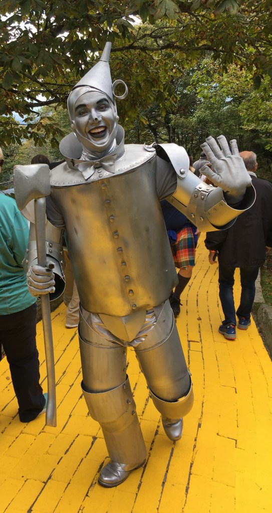 Folks are encouraged to dress up as their favorite Oz inhabitant so there were adorable Dorothys, a couple of cute lions, one or two munchkins, and I saw one little Glinda. Adult women leaned more toward the Wicked Witch of the West. But it wasn’t just adult women who got into character, several men did too. The story has a nostalgic hold and it was evident this place brings out the child in all of us. In the Emerald City there’s a final performance with the full cast. The lady sitting next to me said one of her earliest memories was coming to the park back in the 70s. She was 4 years-old and she came with her grandma. She’d wanted to return with her ever since the park re-opened, but it wasn’t until this year she was finally able to get tickets. (They sell out quickly.) Grandma sat beside her.