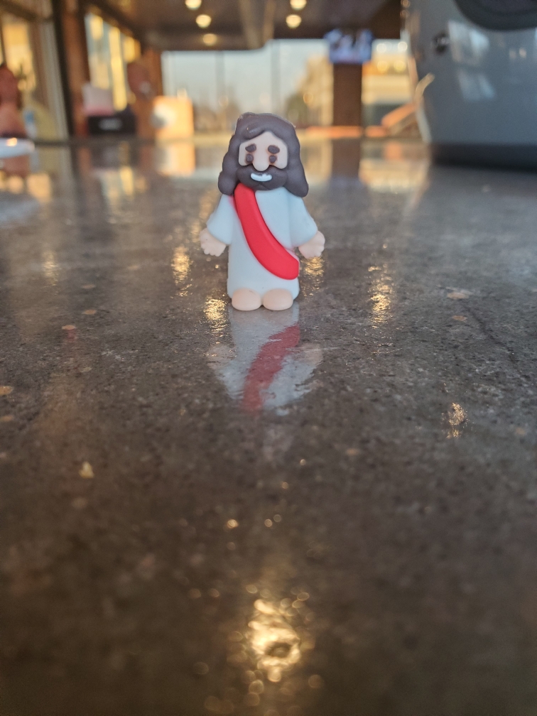 This tiny, smiling, arms-outstretched Jesus is a reminder that even though we’re in the season of Lent and we’re remembering his dying and rising, he’s already done all that. He’s not doing it again. He’s risen and he’s present. Now. While we focus on repentance, we mustn’t forget to also feel joy. It’s possible to hold both.