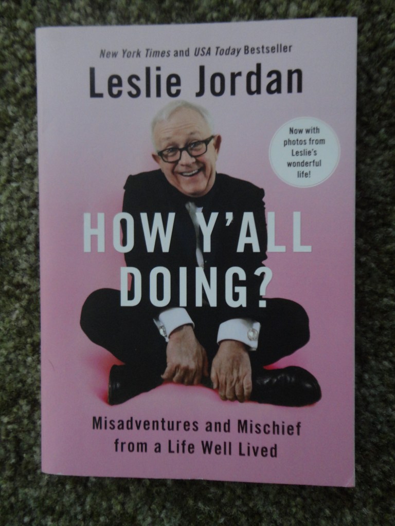 How Y’all Doing? By Leslie Jordan Bursting with color and life, dripping with his puckish Southern charm, How Y’all Doing? Is Leslie doing what Leslie does best: telling stories that make us laugh and lift our spirits even in the darkest days. I hear Jordan’s joy and exuberance when I read his stories. A wonderful soul.