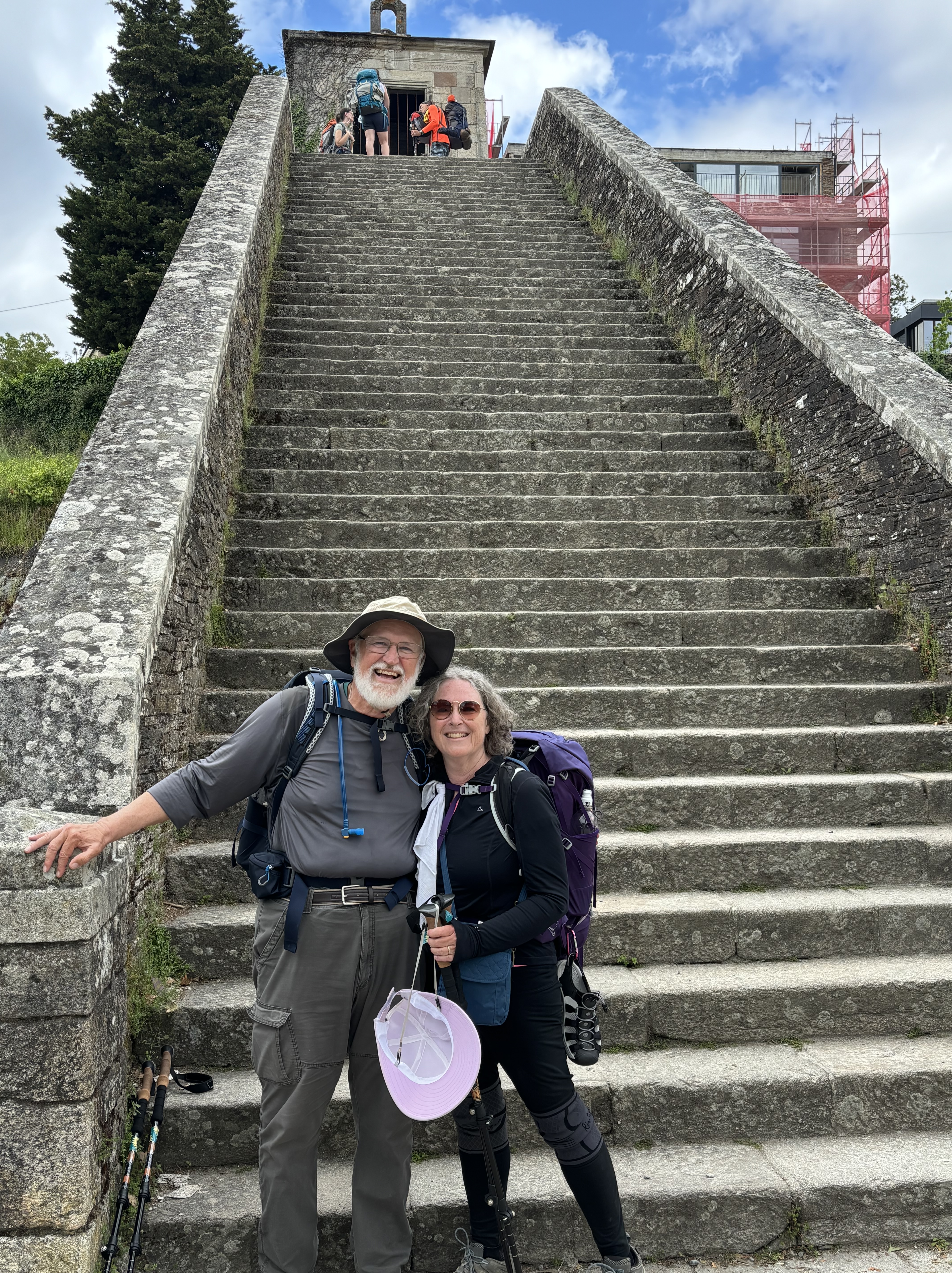 I don’t remember this being in the movie, but it’s one of the milestones pilgrims on Camino Facebook sites mention. After another day of up and down mountains, you see these steps as if they’re literally rising out of the river. You feel your knees buckle. The steps are steep, the treads narrow, and they’re made of stone. If one stumbles or falls there will be damage. They weren’t as difficult as they appear. My one son asked if we ran up like Rocky. We did not. Some teenagers did … but we did not. These are a milestone because you’re almost there! For us, we were just five days away from the end.