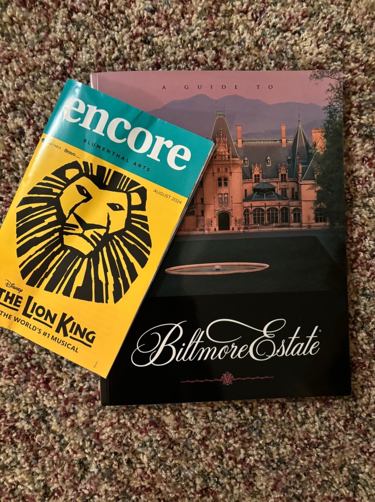 Instead of a morning at the playground or watching Bluey, there’s been a visit to the Biltmore Estate in Asheville and seeing the Broadway production of The Lion King in Charlotte.