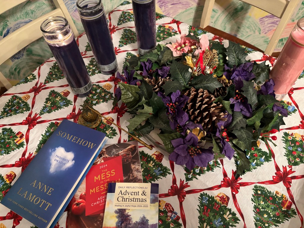 Which brings me to the final book I have for Advent, Anne Lamott’s, Somehow: Thoughts on Love. This isn’t a book specifically for Advent but a book of 10 essays on love by one of my favorite writers. Somehow was my Rowdy Readers book for last month, but I didn’t get it read. I think it was meant for me to rest and read them during this time of waiting and preparation. Love being an anchor in my mess and daily-ness of life.