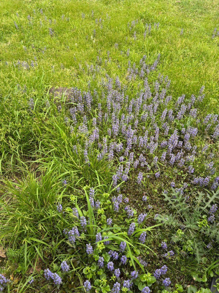 Ahhh the rain has started and it’s getting late. I hope you have a great week and I’ll be back on Monday. Here’s a picture from my yard–not of pollen this week–that’s inspiring some poetry. It’s called Bugleweed and the bees love it.