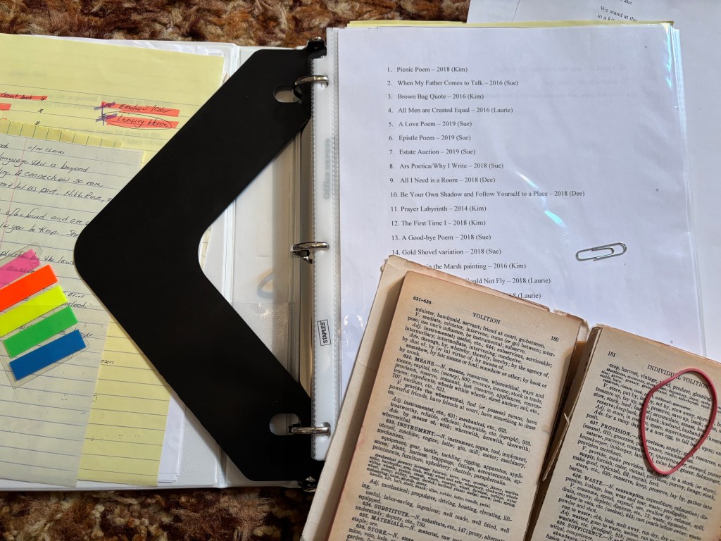 What will make this collection unique is how our different voices responded to the same prompts. Dee is our oldest sister, late 70s, who still plays softball in a Senior League that won state and national championships last year. She also has a doctorate in a geography-related field and her poems connect to nature, Indigenous Peoples, and the spirit world.