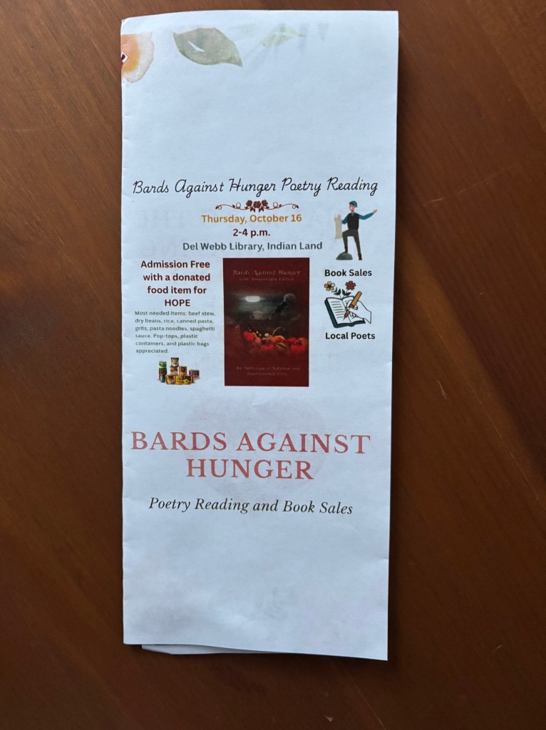 Last week’s post was intended to be a positive one, announcing some upcoming events happening in a world that’s struggling. It’s late news, but still important. Last Thursday I participated in a Bards Against Hunger poetry reading with seven other poets. Bards Against Hunger began in 2013 as a one-time reading by a group of Long Island, NY poets, with the purpose of collecting food for their local food bank. Well, ‘one-time’ didn’t happen. The project has since spread nationwide, and every fall poetry groups in every state and some US territories host readings and collect food. According to their website, Bards Against Hunger events have provided resources for over 100,000 local pantries and food banks. (That’s how I see hope spreading, one little bit at a time.)