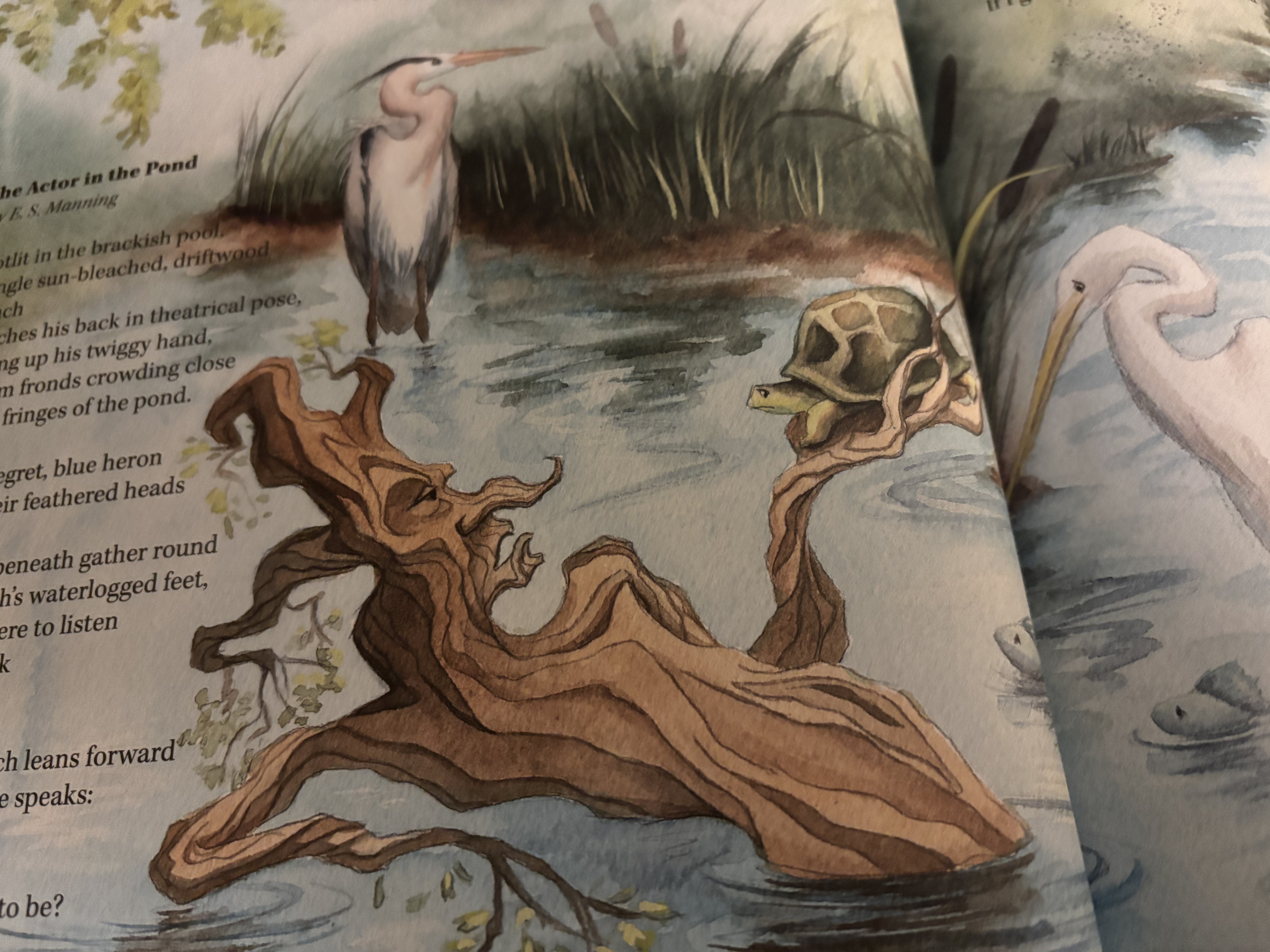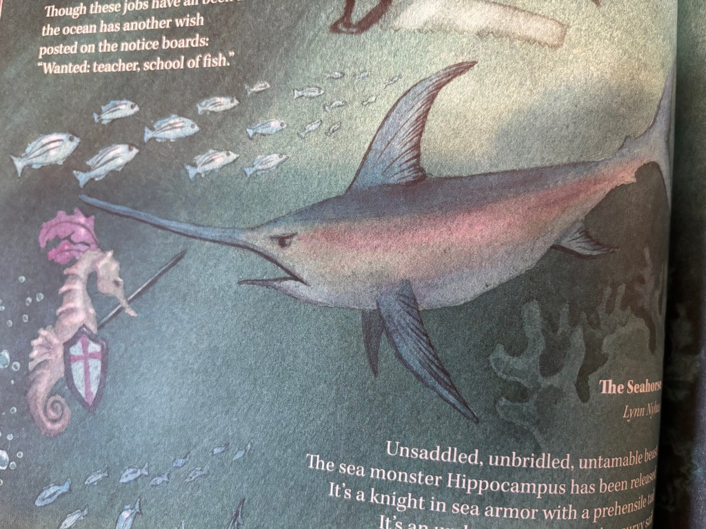 In Flora & Fauna, poems are about the usual suspects–flowers, insects, bugs, birds, etc. The artwork throughout the book is by Emily J. Person, and each page is a work of art … or most often several works of art. The opening spread is littered with images that are found throughout the book, adding to the reading experience as kiddos look for the objects while reading. Or being read to.