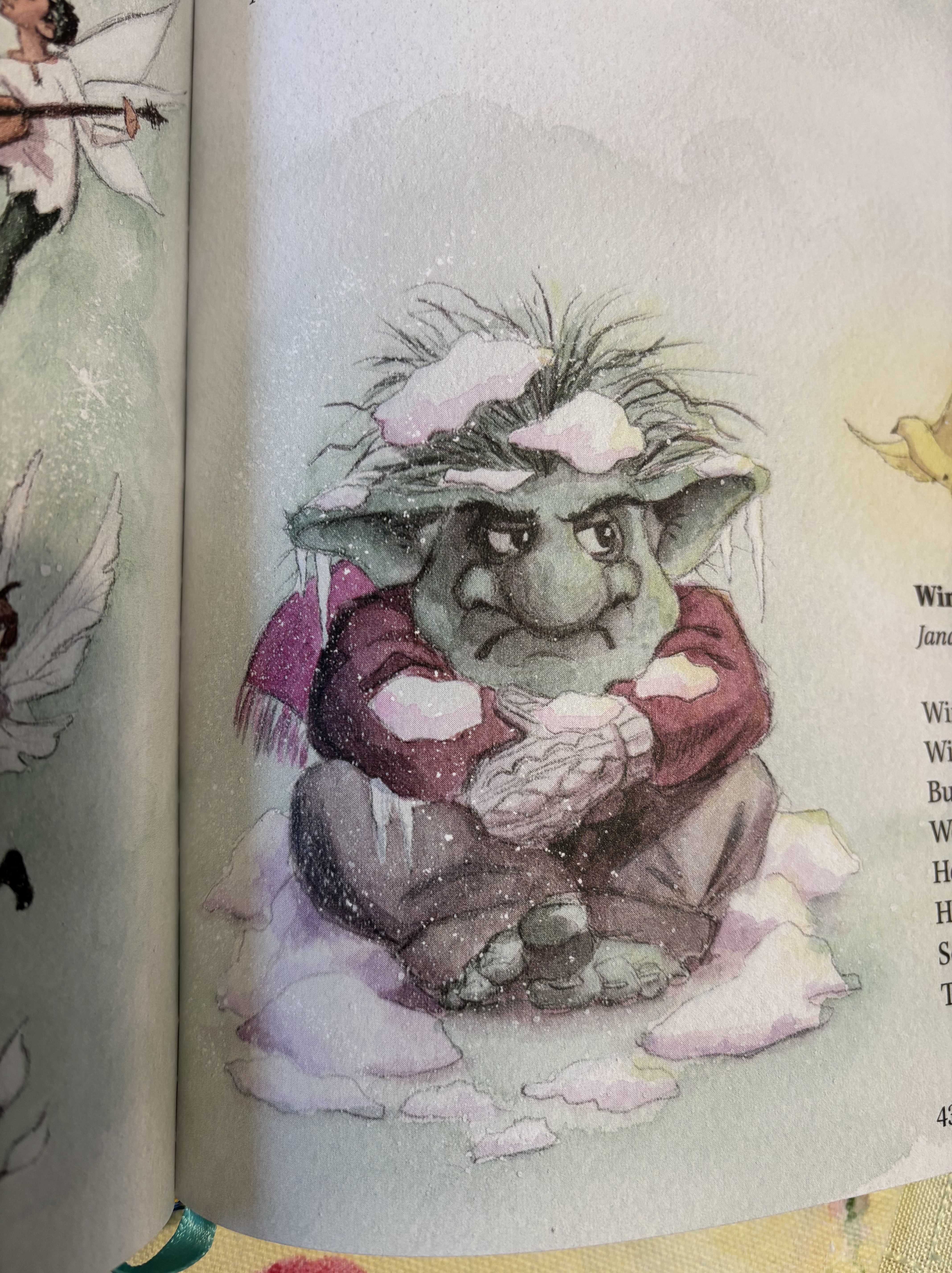 Dreams & Whimsy celebrate faeries and Jack Frost, sleeping in hammocks and traipsing through woods, and all the places imagination stirs. Here’s Winter, the troll not happy with spring’s arrival.